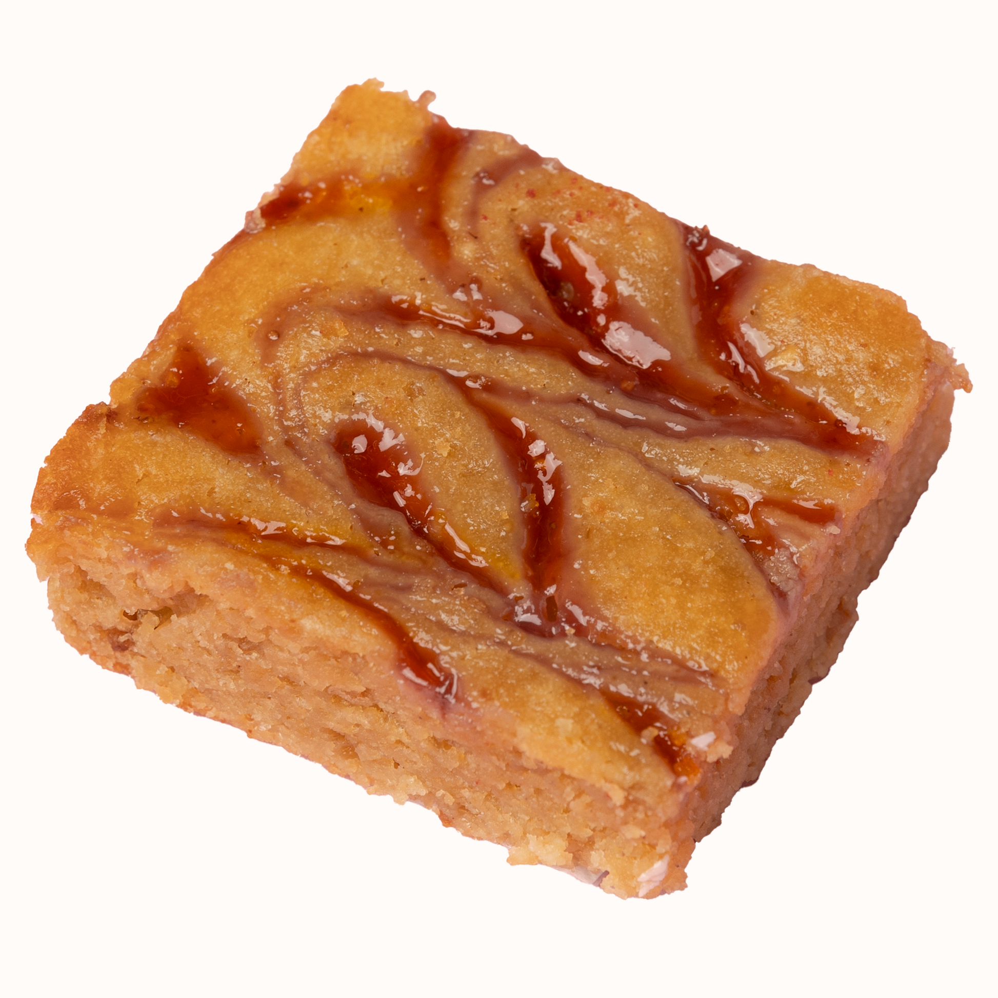 harina de almendra, crema de cacahuate, chocolate blanco, mantequilla, huevo, monk fruit, vainilla, polvo para hornear, fresa, alulosa.